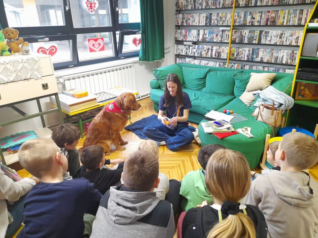 Učenici trećih razreda naše škole sudjelovali su u edukativnom R.E. A. D. programu uz uključivanje terapijskog psa Benija. Projekt je namijenjen djeci s teškoćama čitanja i socijalne komunikacije. Radionica učenja Brailleovog pisma provodila se za učenike petih razreda.